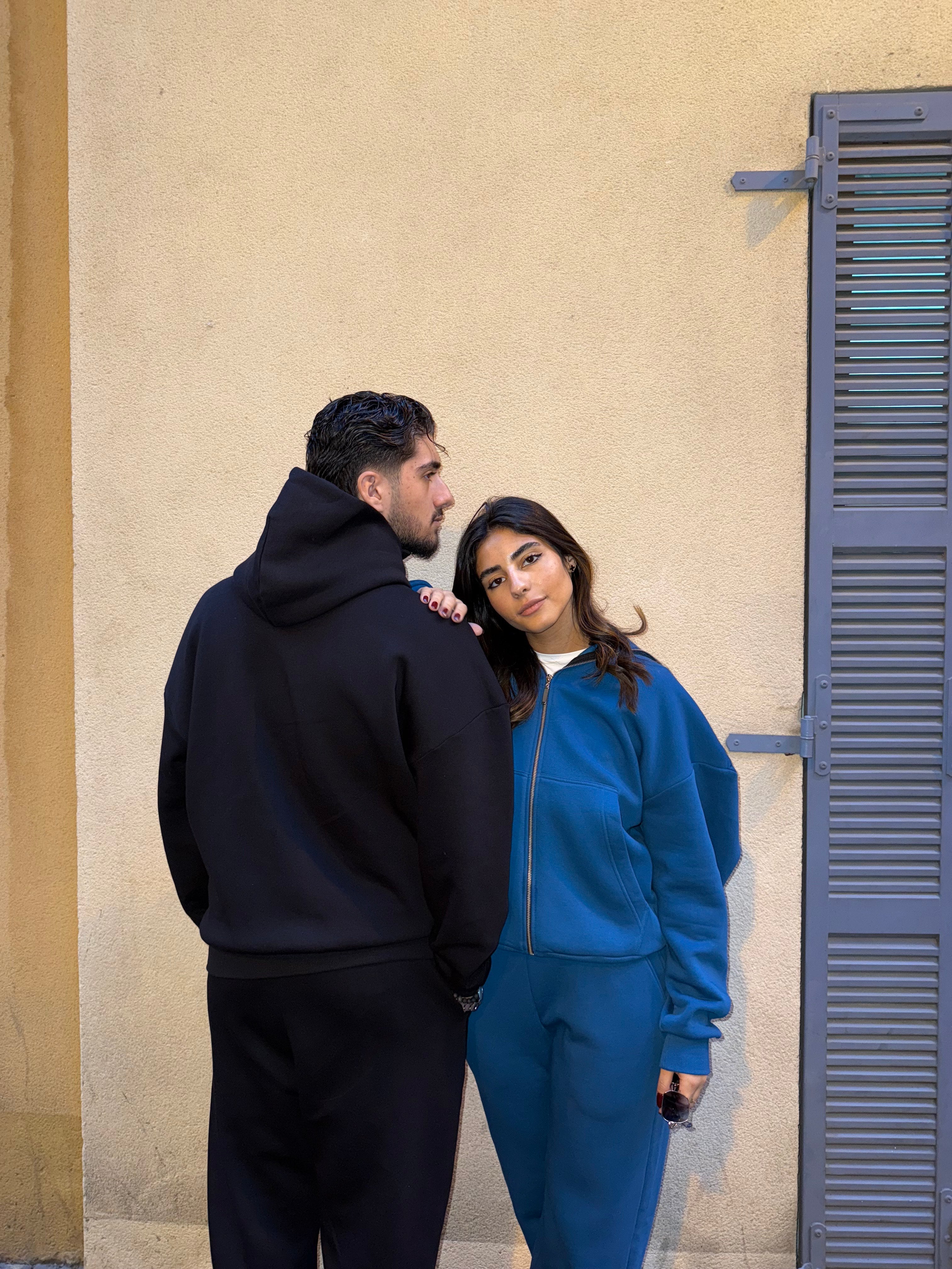 Locally branded pieces made with heart — blending the depth of petroleum blue with the quiet strength of black.